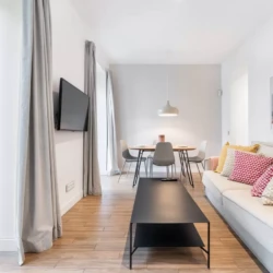 Bostaden är inflyttningsklar och belägen i Chamberí, ett etablerat och omtyckt bostadsområde med hög livskvalitet. Området erbjuder goda kommunikationer, närhet till kontorsområden, service, restauranger och kultur, samt smidig tillgång till stadens centrala delar. Ett utmärkt val för företag och relocation-gäster som söker stabilitet, komfort och ett professionellt boende i Madrid.