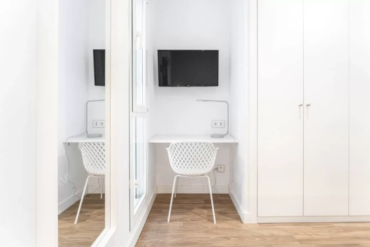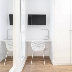 Bostaden är inflyttningsklar och belägen i Chamberí, ett etablerat och attraktivt bostadsområde med hög livskvalitet. Området erbjuder goda kommunikationer, närhet till service, restauranger och kontorsområden samt smidig tillgång till stadens centrala delar. Ett utmärkt val för företagsresenärer, konsulter och relocation-gäster som söker ett professionellt och bekvämt boende i Madrid.