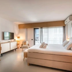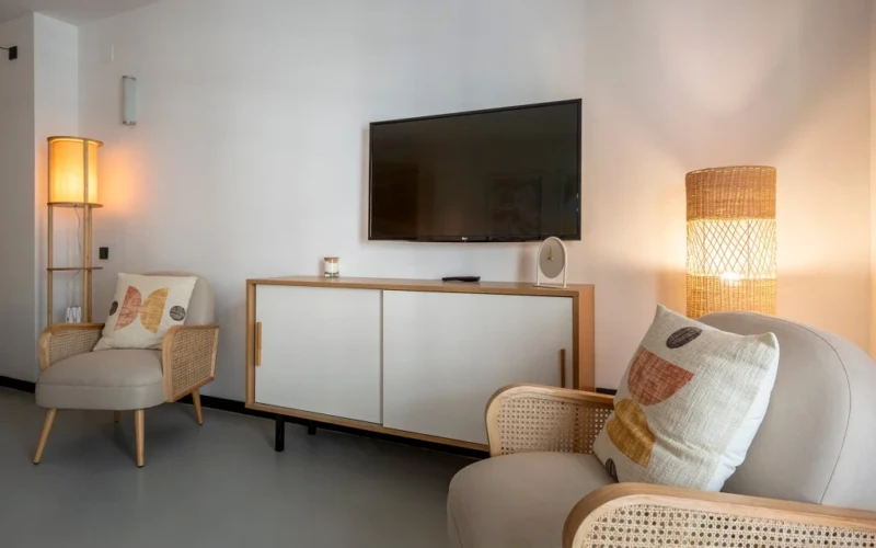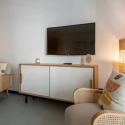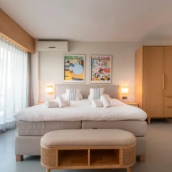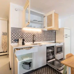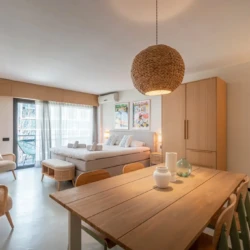 Denna studiolägenhet är på 45 m² och erbjuder en bekväm dubbelsäng samt fullt möblerade köks- och hushållsapparater. Här finns snabbt wifi som gör det enkelt att arbeta på distans och bo bekvämt, perfekt för företagsresenärer och digitala nomader.